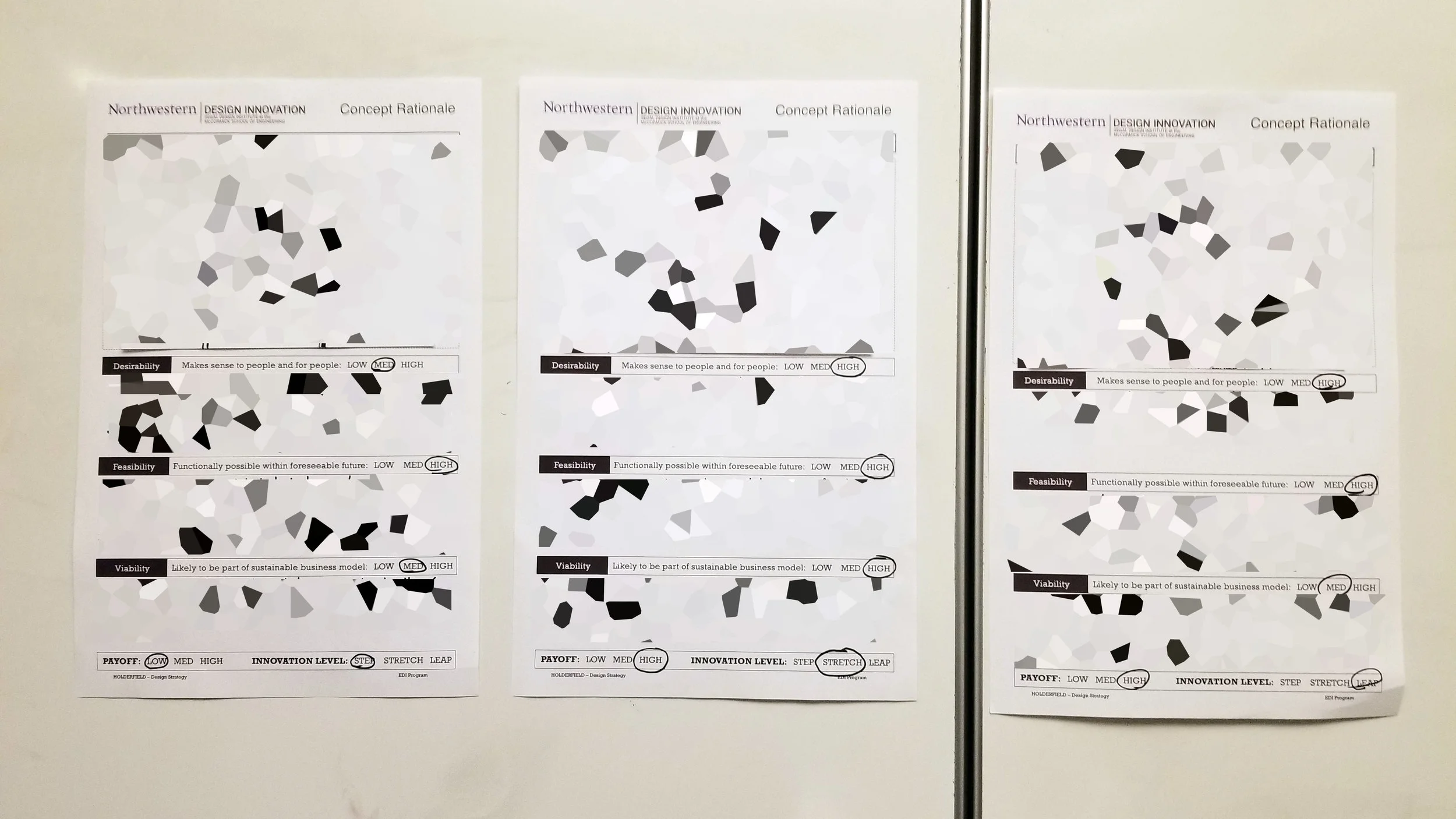 Once the direction became clear, the team then started generated various concepts. Each concept had a step, stretch and a leap applications, and each of the application had reasoning for their desirability, feasibility and viability, which were backed by either primary or secondary research findings. Overall, team generated 5+ concepts that aimed to address the same problem, via different methodologies or technologies. In the end, the team chose on the concept that they thought it was aligned the most with the findings and the syntheses.
