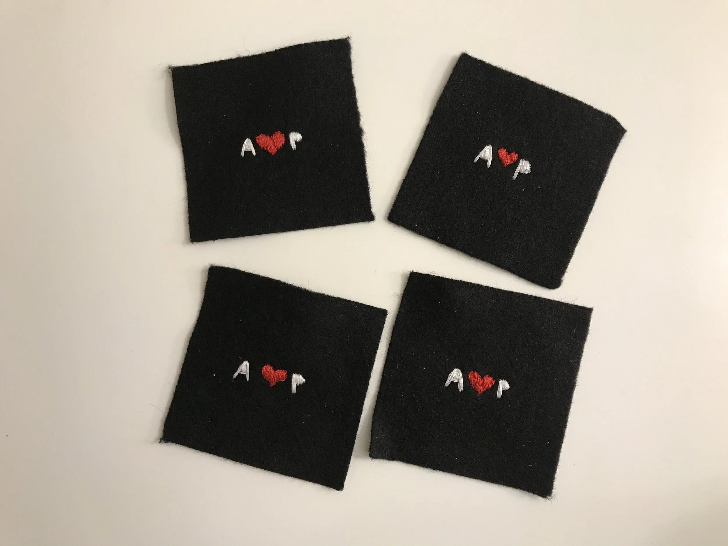 To personalize it, Erica Cusnariov, a very special friend of mine, joined me on this journey and added their initials and with hearts on the felt that I was going to adhere under each piece.