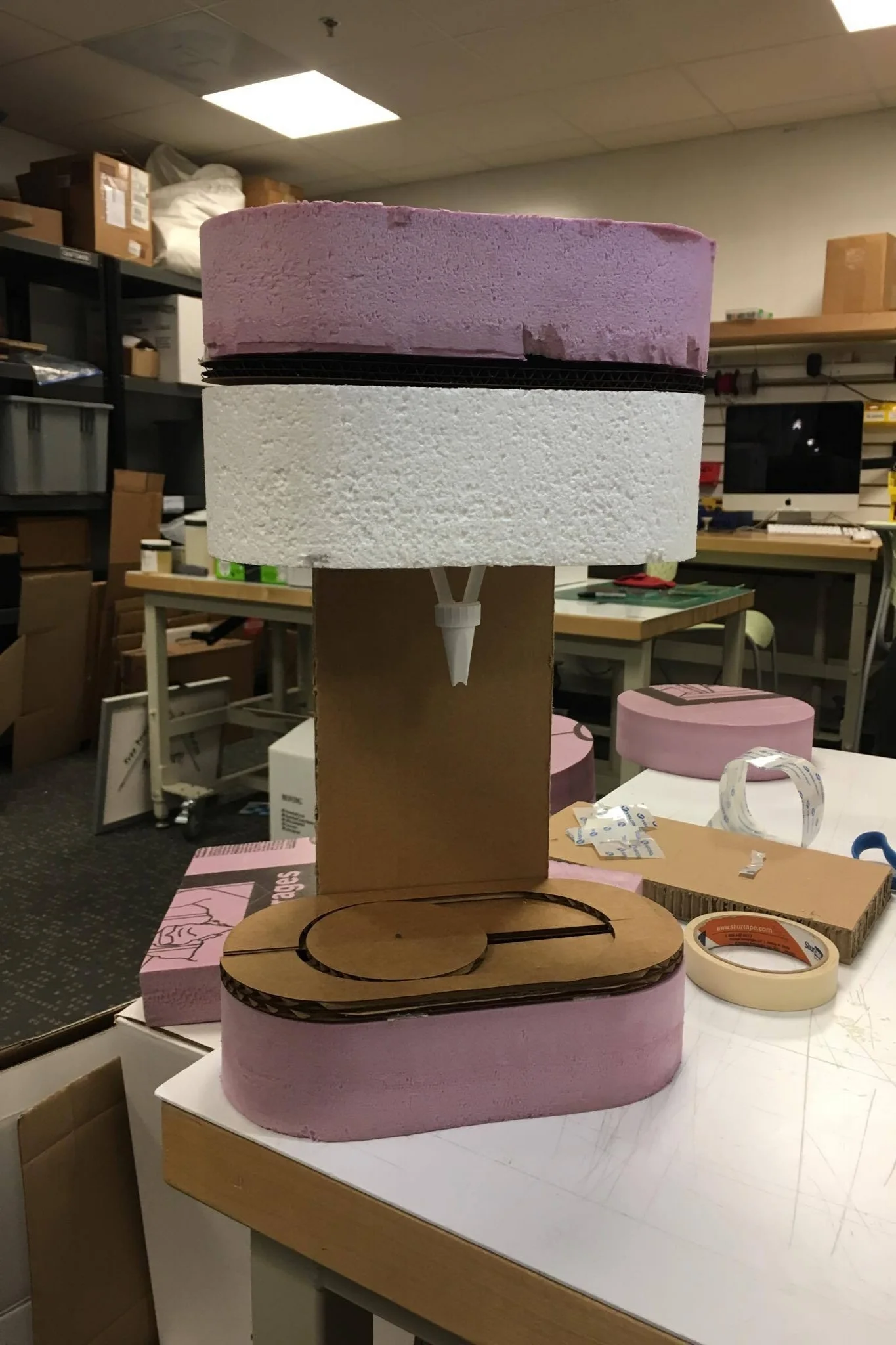 The team designed and developed an automated cupcake froster for bakeries as well as in home use. The team delivered a fully functioning alpha prototype that works via a custom mobile app, after many sessions of needfinding, prototyping, modeling and manufacturing.